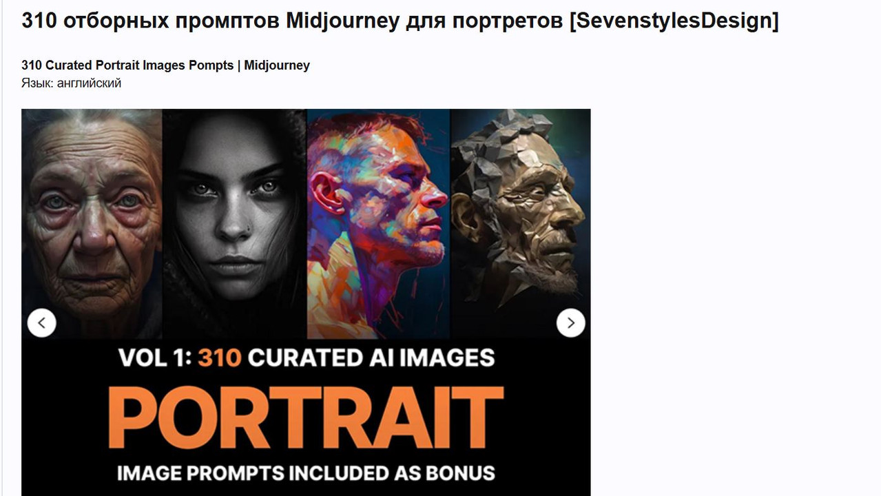 [SevenstylesDesign] 310 отборных промптов Midjourney для портретов