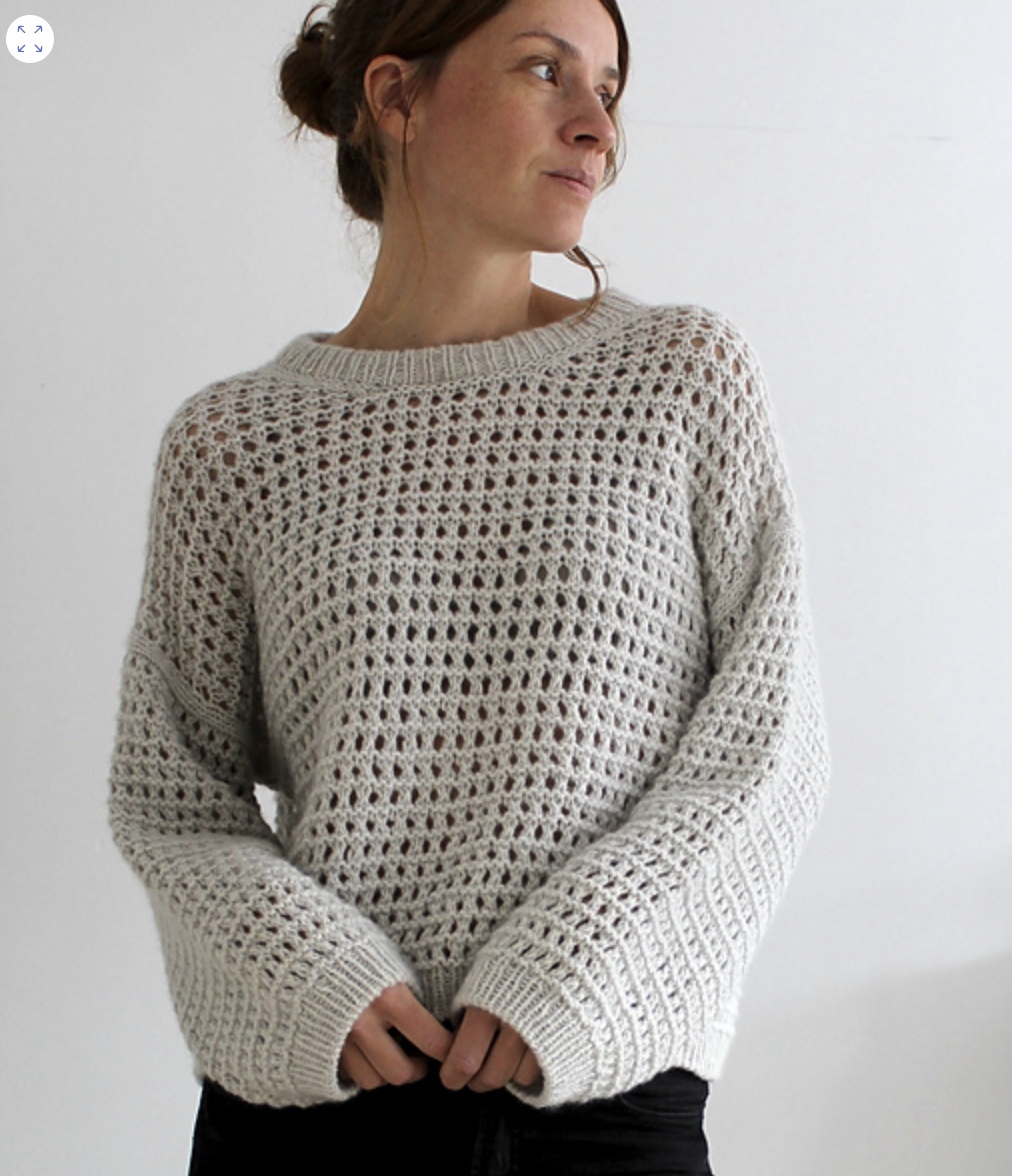 Der Pullover sollte einen Bewegungsspielraum (‚positive ease‘) von ca. 15 cm zum Körper haben. Wer es sehr locker und oversized mag, kann etwas mehr ‚positive ease‘ einplanen. Bei einer Größe von 1,76 m und einem Brustumfang von 88 cm trage ich den hellen Sweater hier zum Beispiel in Größe M und den dunklen Sweater mit etwas weniger ‘positive ease’ in Größe S.